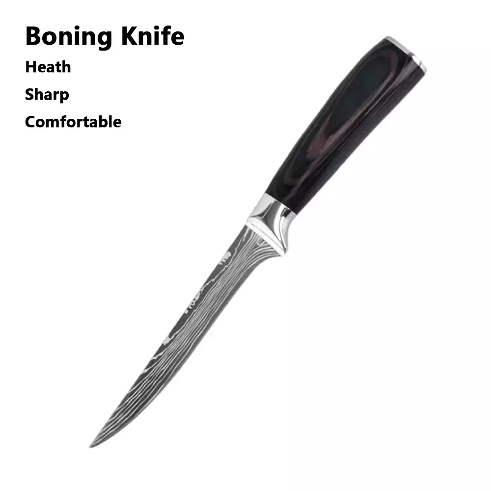 Cada faca é confeccionada em aço inoxidável de alta qualidade, garantindo resistência à corrosão e manutenção do fio por muito mais tempo. O design tradicional japonês Santoku proporciona um corte simples e eficiente, ideal para fatiar, picar e cortar diversos ingredientes com facilidade e segurança.
